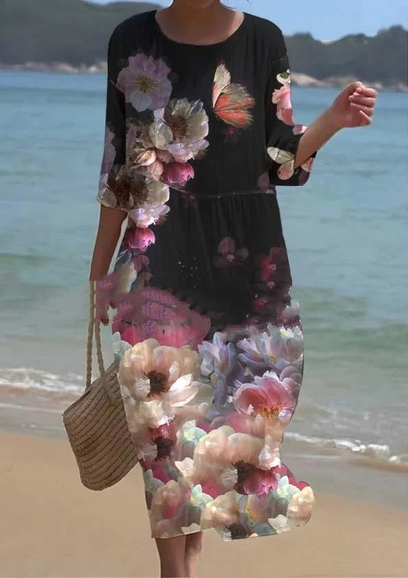 Spring is the perfect time to escape to the beach in style, and our elegant blue floral print beach dress is the perfect choice for a sophisticated, relaxed look. The Isla offers a loose and comfortable fit with 3/4 sleeves, designed for enjoying the sun with a touch of elegance.