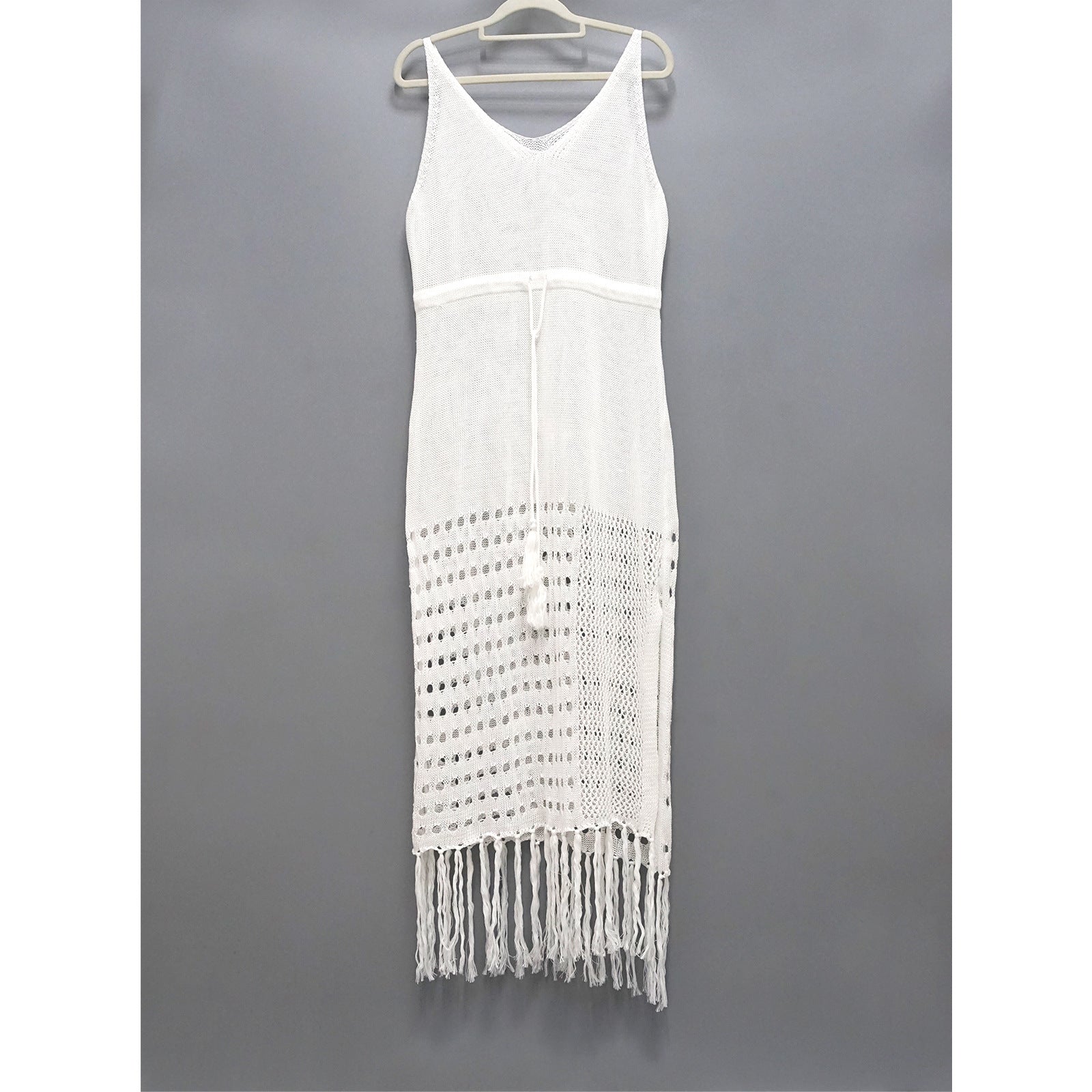 Ladies airy beach dress with fringes and tie belt Ivyshape