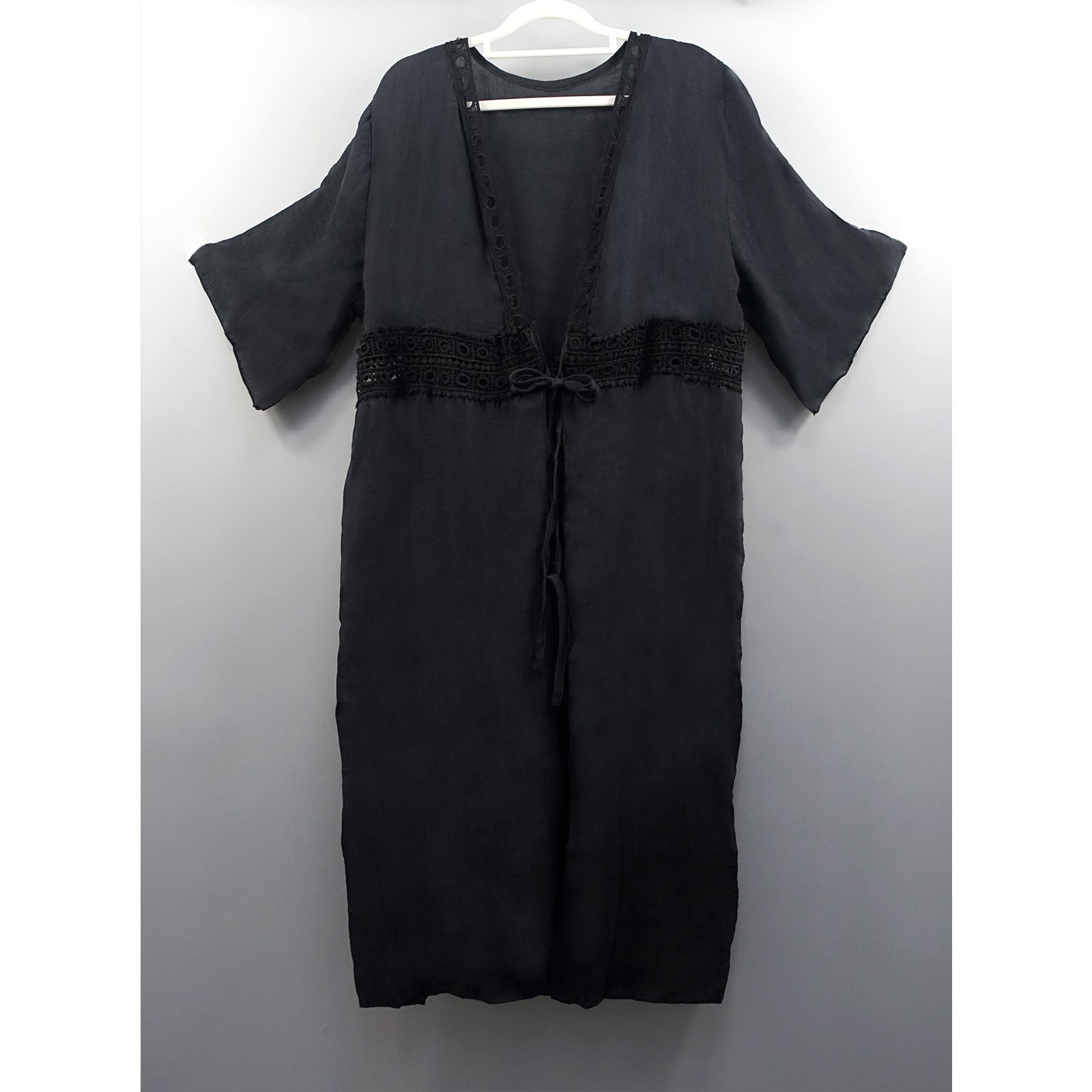 Ladies airy beach tunic with crocheted detail and tie belt Ivyshape