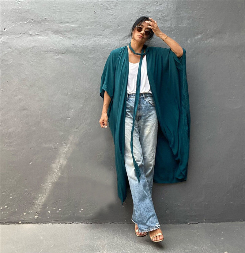 The elegant beach coat from Ivyshape is the ideal fashion statement for warm summer days. Made from a lightweight, breathable material, this coat offers both style and comfort. With its casual cut and wide sleeves, it is perfect for the beach or relaxed afternoons outdoors.