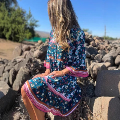 - Stylish Design: The dress showcases an elegant button placket and flowing bell sleeves, offering a blend of chic and comfort.