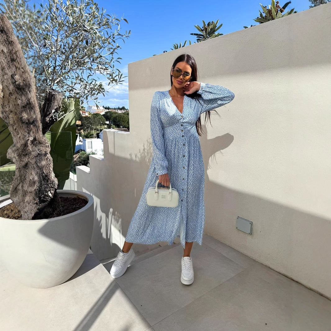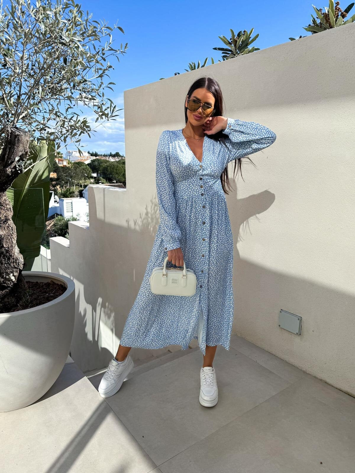 Discover our stylish women's midi dress with button details and voluminous sleeves, perfect for any season. This dress combines stylish elegance with maximum comfort.