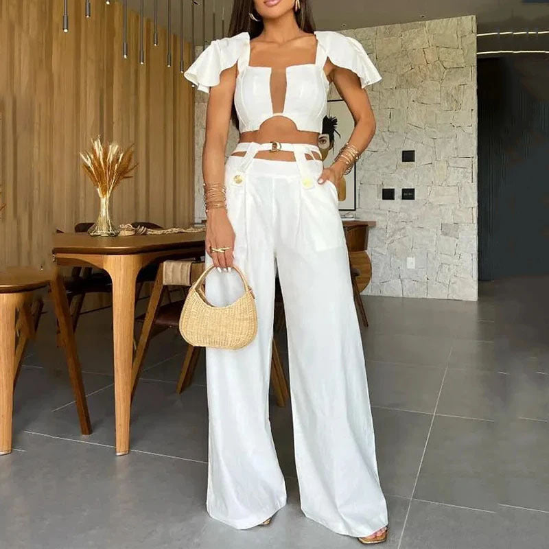 Discover the beauty of this two-piece set that combines elegance and modernity, perfect for tackling the spring season with class. Featuring a square neckline and strategic slits, this outfit enhances your silhouette in a charming and bold way. A must-have for women who want a versatile look, suitable for both special occasions and casual elegance.