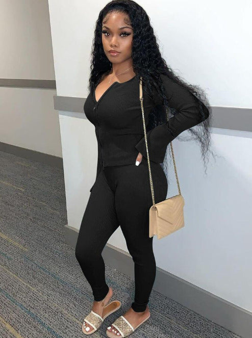 Women Ribbed Knit Zip-Up Active Set Ivyshape