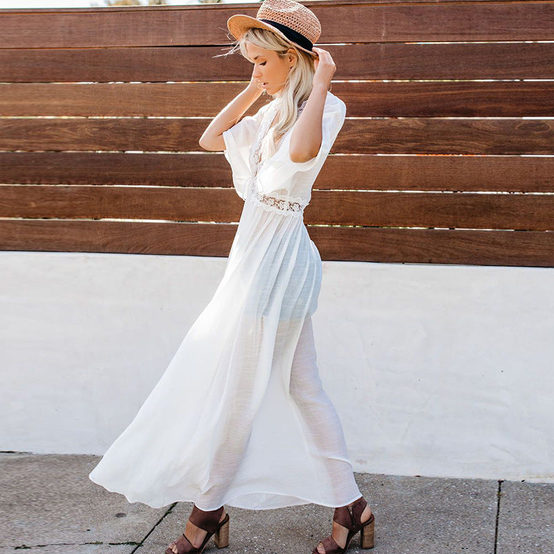 Discover the stylish women's Airy Beach Kimono with intricate lace detailing from Ivyshape. This elegant kimono is the perfect addition to your summer wardrobe and ideal for relaxed days at the beach or chic summer events.