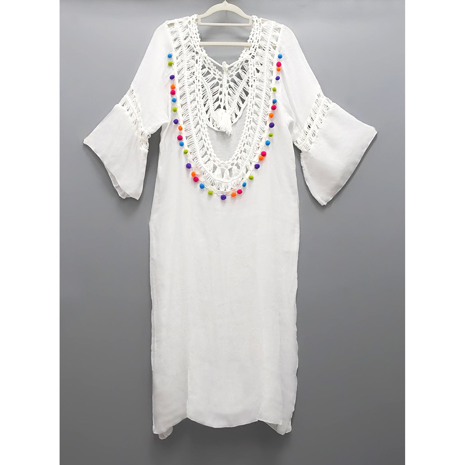 Discover our elegant women's airy beach tunic with elaborate crochet applications, which is not only stylish but also incredibly comfortable. Ideal for summer, this model offers a perfect combination of trend and functionality.