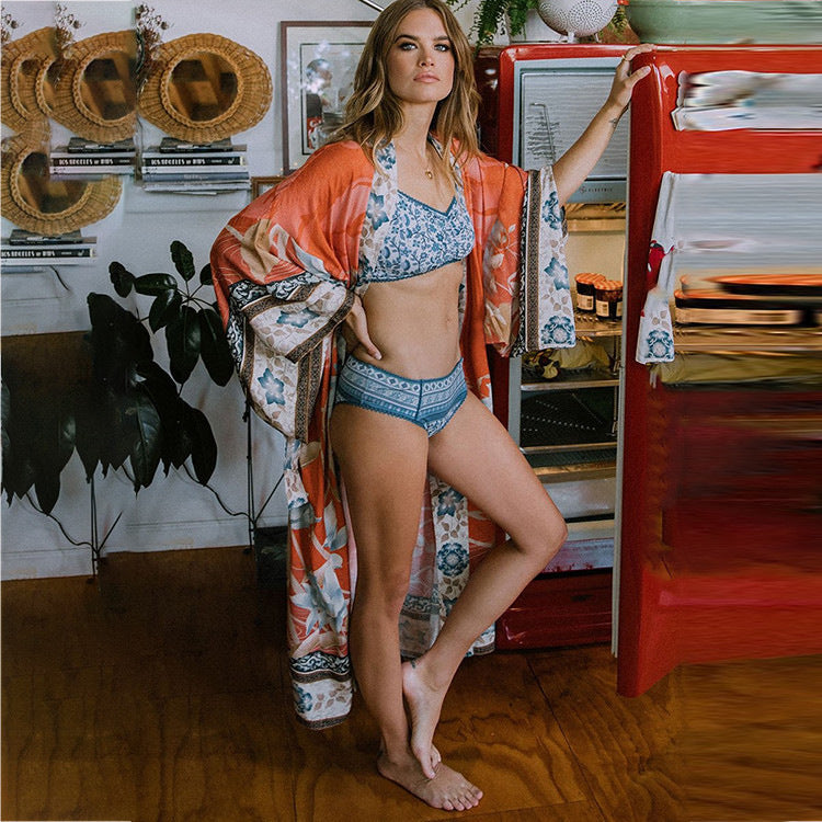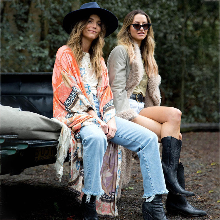 Women's Boho Style Beach Tunic with Floral Pattern and Elegant Cut Ivyshape