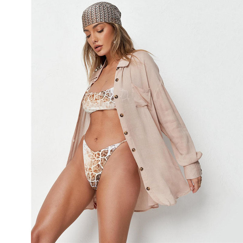 Discover our women's casual beach blouse with high-quality button detail Ivyshape – the ideal garment for a relaxed day at the beach or pool. This blouse combines style and comfort and is perfect for trend-conscious women looking for a cool look.