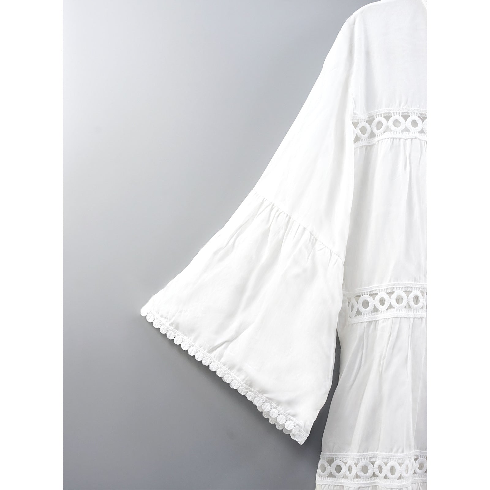 - Sleeves: Loose, elbow-length sleeves with beautiful lace embellishments that brighten up your look.