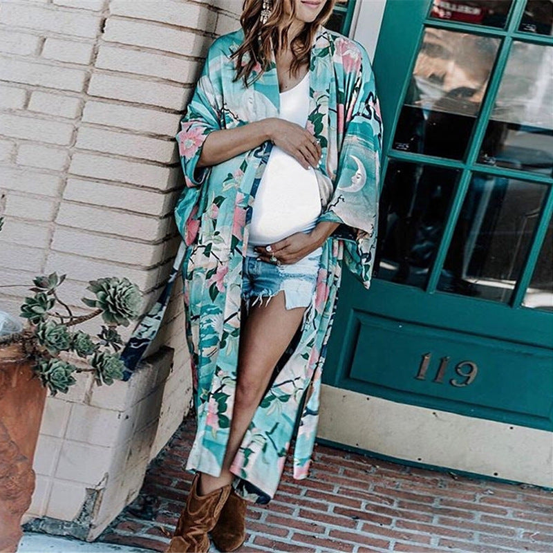 Women's Maxi Beach Dress with Elegant Side Slits and Floral Pattern Ivyshape