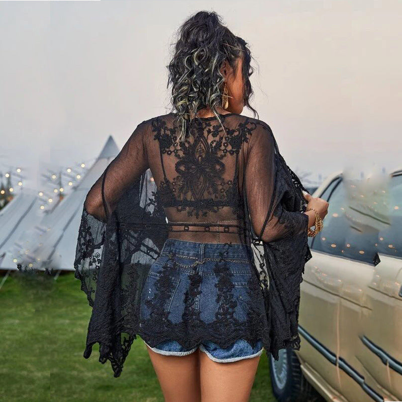 - Design: Open front with a beautiful crochet pattern that reveals your bikini or swimsuit
