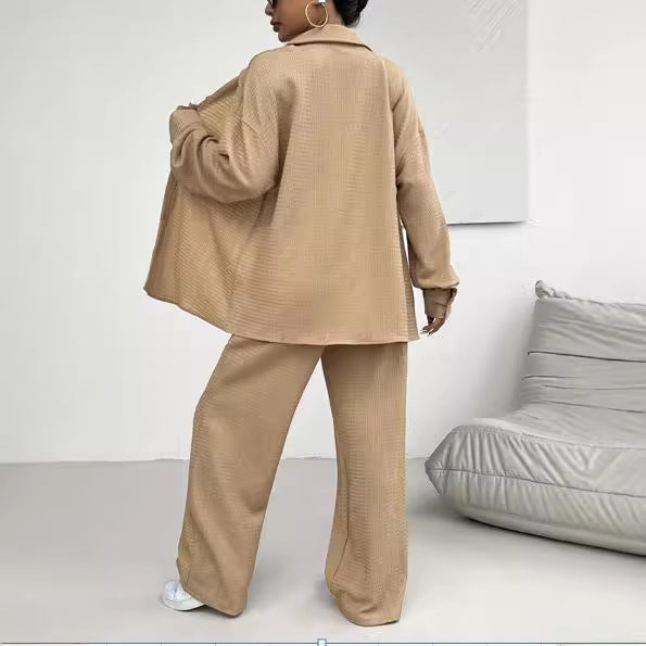 Our women's two-piece set made from patterned fabrics offers the perfect combination of comfort and style. This ensemble includes a casual top and relaxed pants that work well together and are ideal for everyday wear or relaxed outings.
